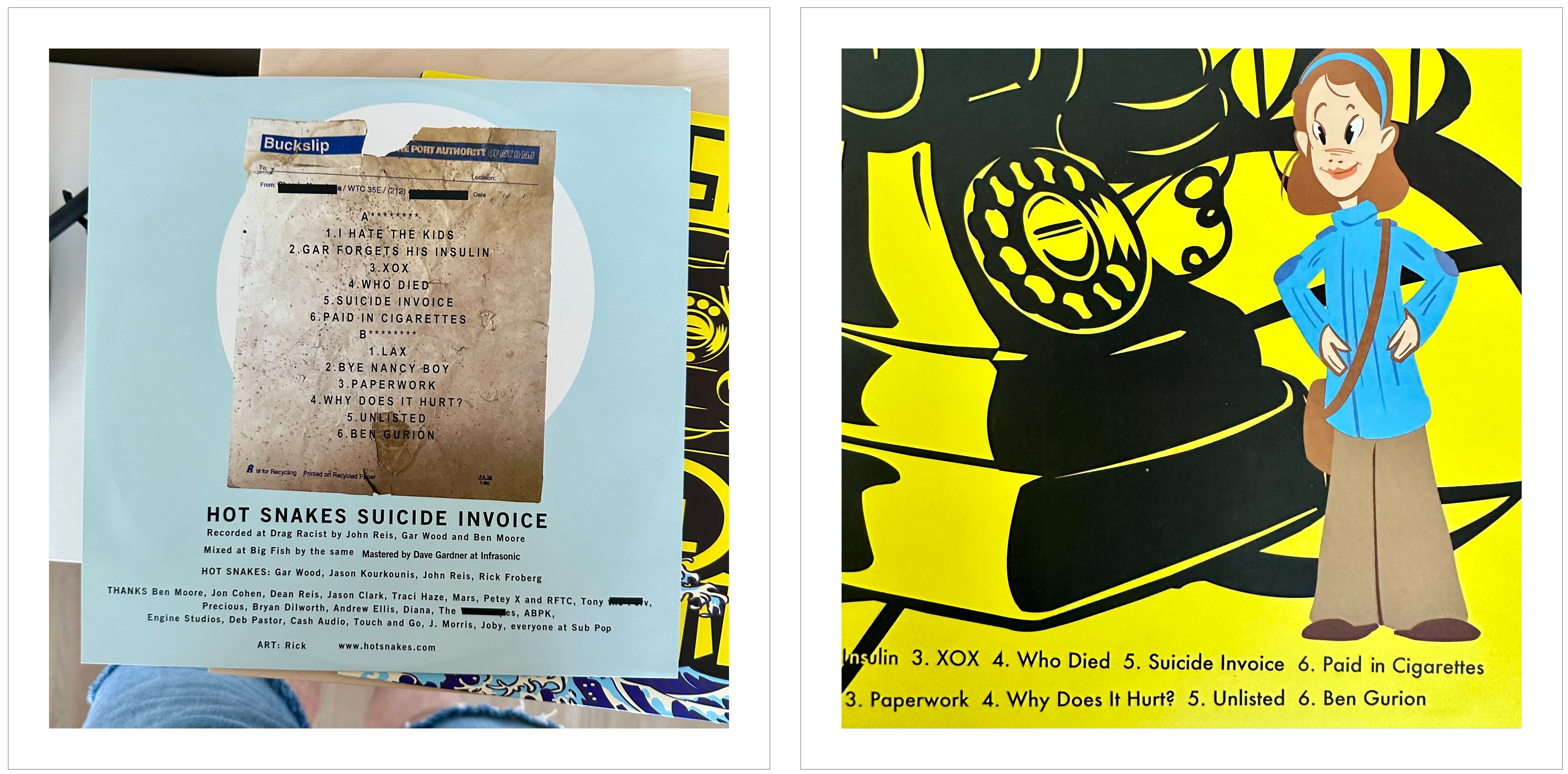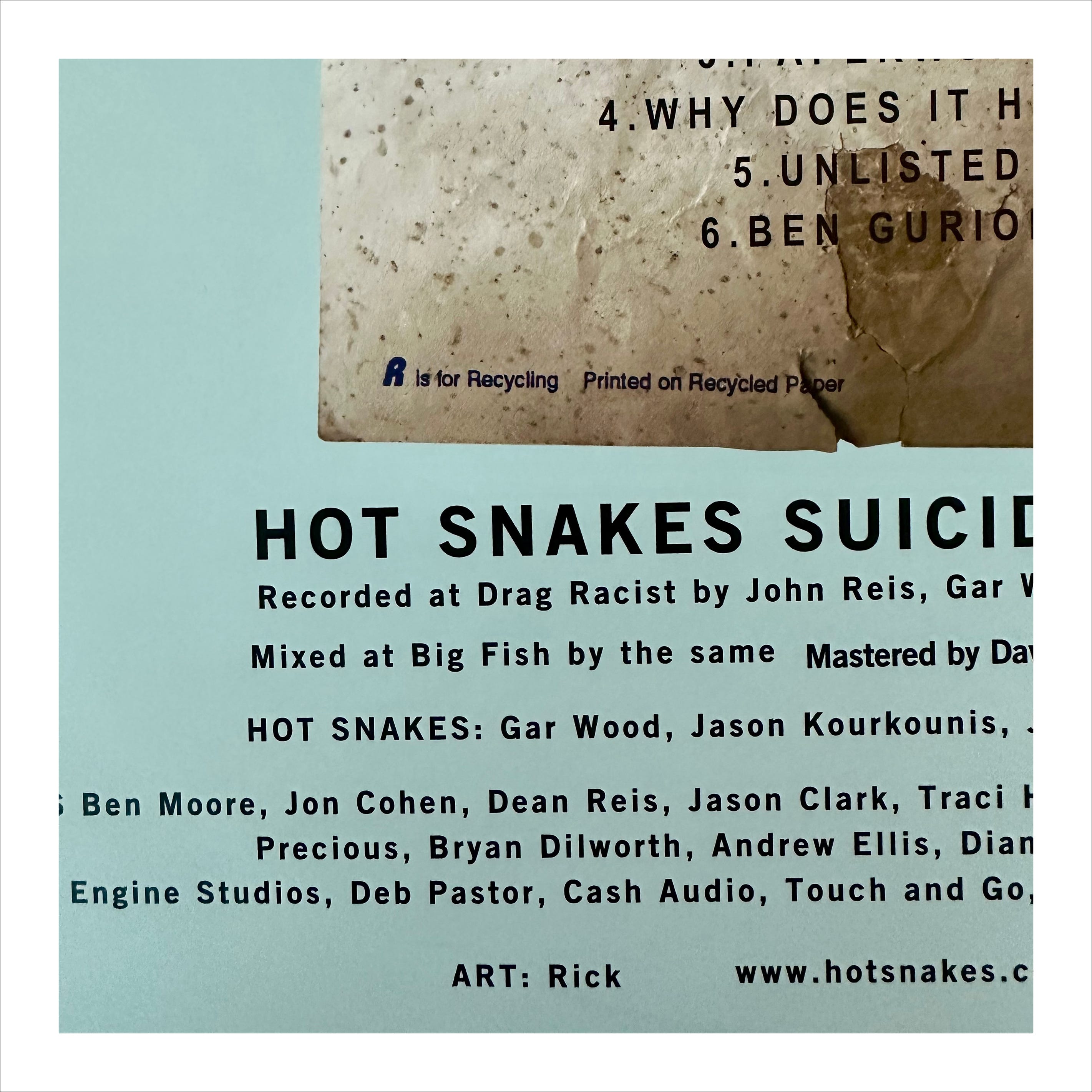 I didn’t have any Hot Snakes LPs. I guess when I last sold stuff, I declared them non-essential. I thought I might not be Hot Snakes’ biggest fan. When Rick Fork recently passed, I listened to both Drive Like Jehu records a bunch. Two of my all-time faves. Then, while record shopping in Seattle, I saw Suicide Invoice in the bin. When I flipped it over, I asked myself whether I knew it. I certainly haven’t heard it in a long time.