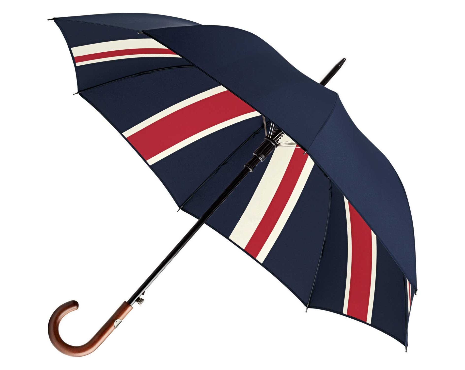 Outside, it had started pouring rain; big fat morning drops. There was a lightning flash as I stepped outside, but no thunder with it yet. I debated whether opening the umbrella made me more likely to be struck, but was motivated to pop it and give the shirt some cover. It had a huge wingspan, and as it opened, the umbrella revealed a Union Jack covering its arching underside. Just a few long blocks back to the Virgin Hotel.
