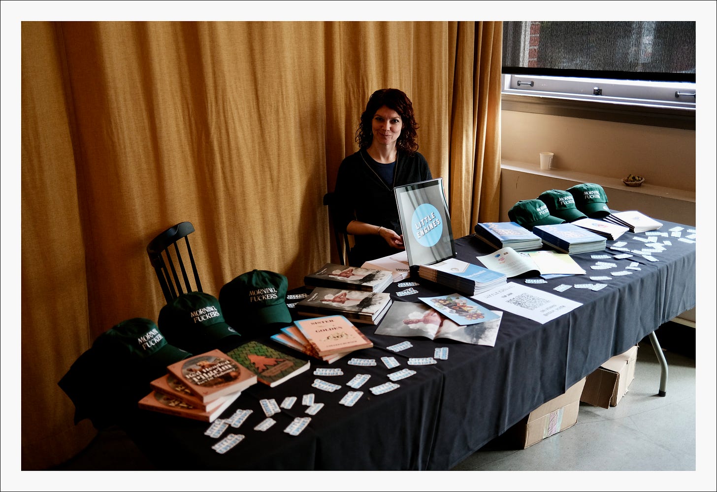 You might know J. from Nagel’s books, but she’s also the Booth Queen for Little Engines, getting the magazine in people’s hands, selling hats and books. A true pro. Makes us look good.