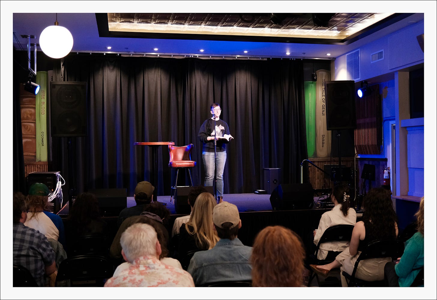 I regret not taking portraits of each reader, so I’ve included stage shots for the wonderful Portland writers who joined us but did not hang out like high schoolers for two days with my camera in their face.