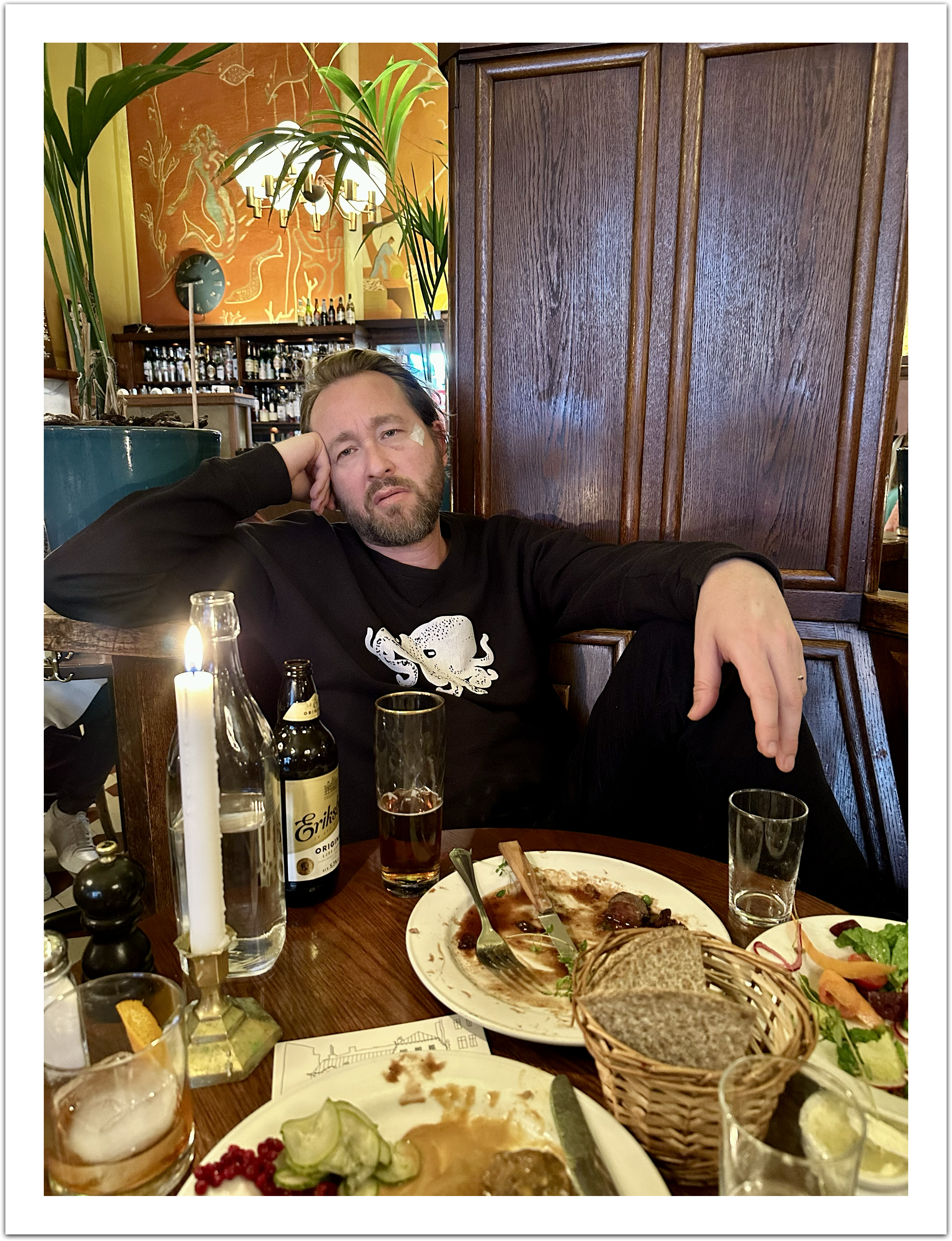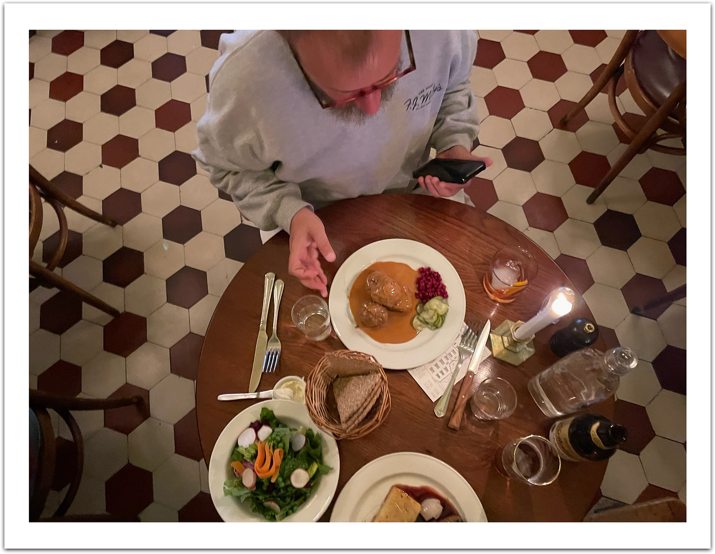 I filled him in on what we’d done our first day, and the two new pieces of Swedish clothing I bought, winding him up, knowing he’d be annoyed.